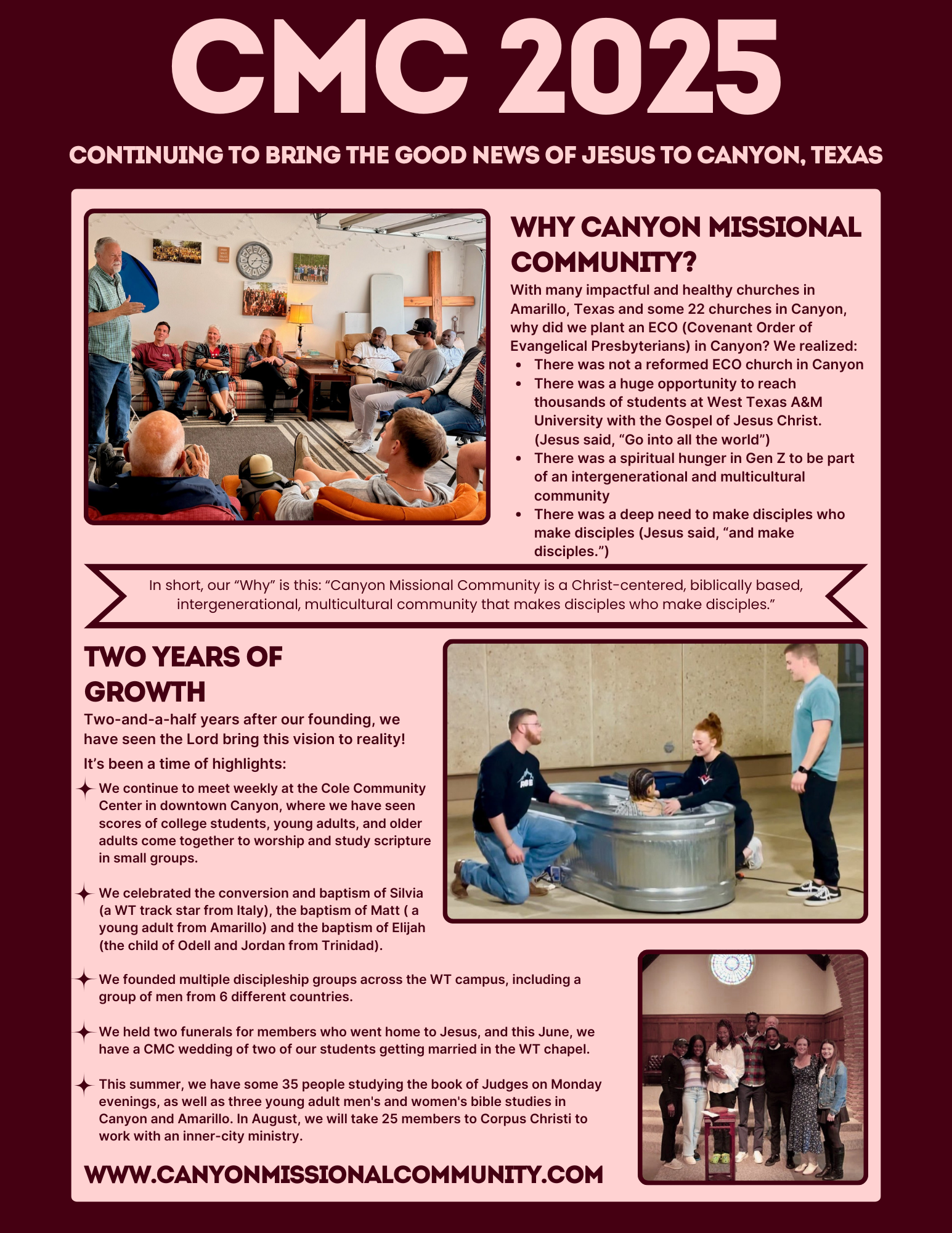 Thank you to First Presbyterian Church Amarillo for launching CMC and providing the main financial support for the past two years.